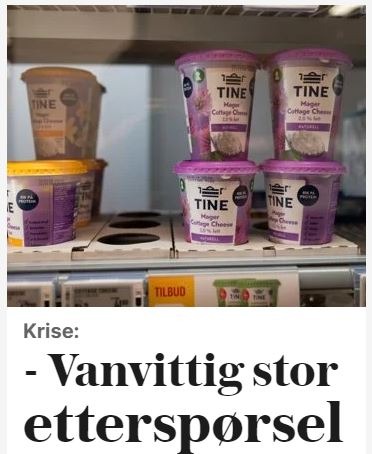 Cottage cheese-nyhetene i Norge handler primært om en enorm popularitetsvekst, drevet av trender på sosiale medier som TikTok, som har ført til både salgsrekorder for produsenter som Tine og midlertidige utfordringer med å møte den skyhøye etterspørselen, noe som har resultert i en "cottage cheese-krise" og behov for investeringer i produksjonen for å møte nordmenns økte ønske om dette proteinrike produktet.