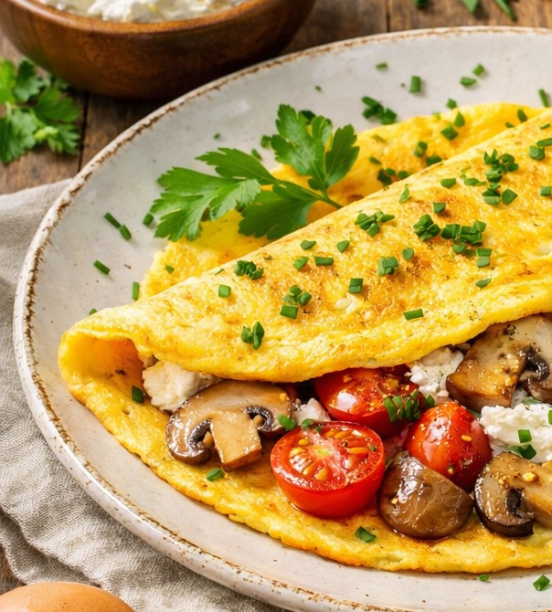Brett omeletten forsiktig sammen. Topp med urter, litt chili eller sitronzest for en frisk 2026-finish.